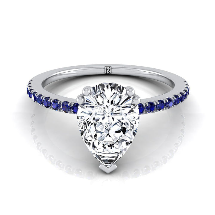 แสดงออกถึงสไตล์ที่สง่างาม แหวนหมั้นแบบกึ่งติดตั้งรูปทรงลูกแพร์นี้มีการจัดวางไพลินกลม 22 เม็ดอย่างสวยงามในแพลตตินัม
