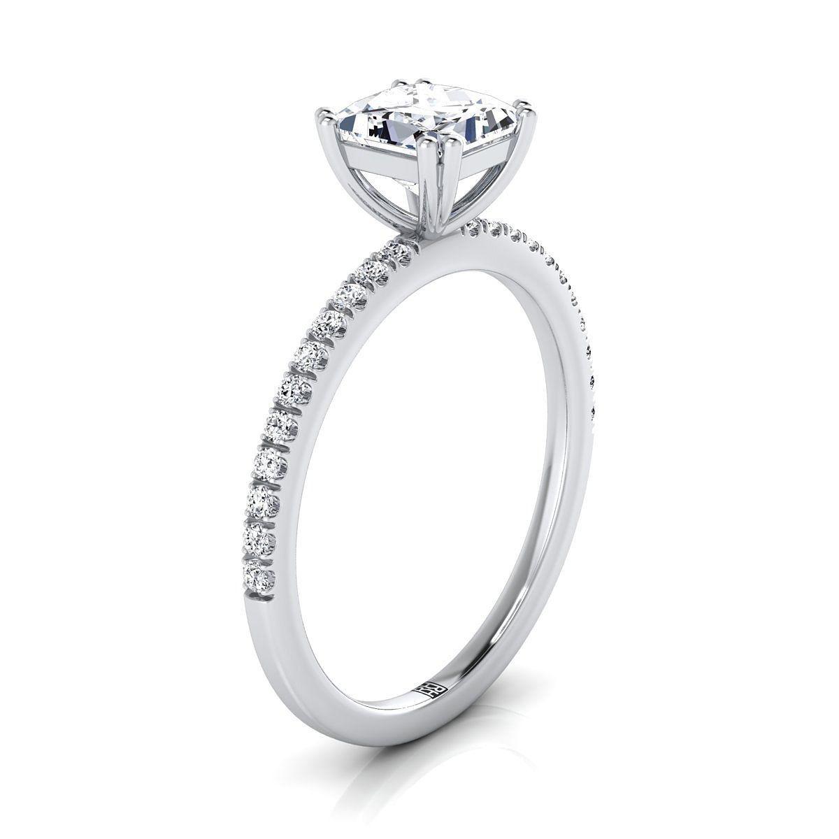 แหวนหมั้นเพชรทรงเจ้าหญิงแบบฝรั่งเศสเรียบง่าย ประดับด้วยกรงเล็บคู่ทองคำขาว 14K - 1/6 กะรัตรวม