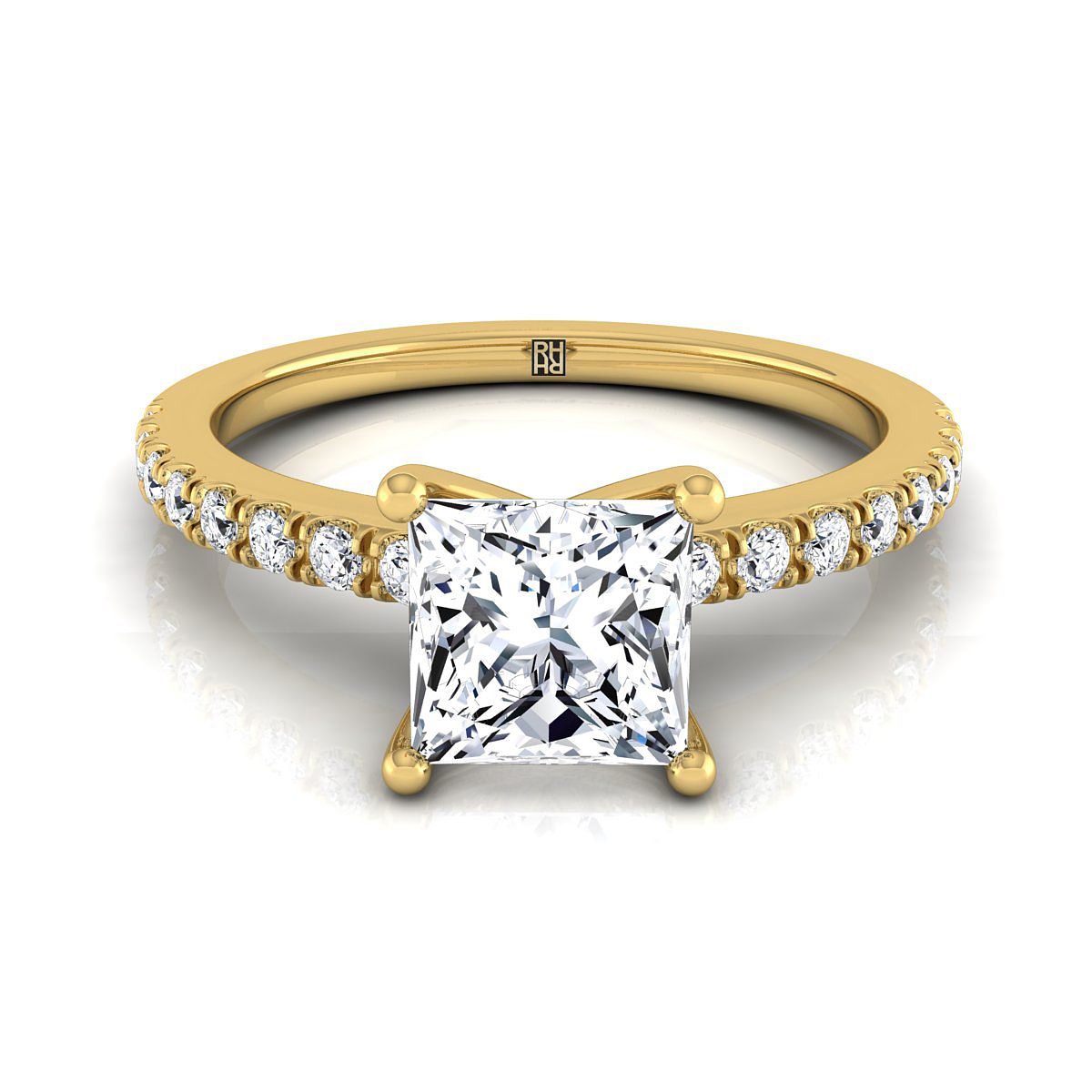 แหวนหมั้นเพชรแบบเรียบง่าย ประดับเพชรแบบปาเว่ ตัดทรงเจ้าหญิง ทองคำเหลือง 18K - 1/5 กะรัตรวม