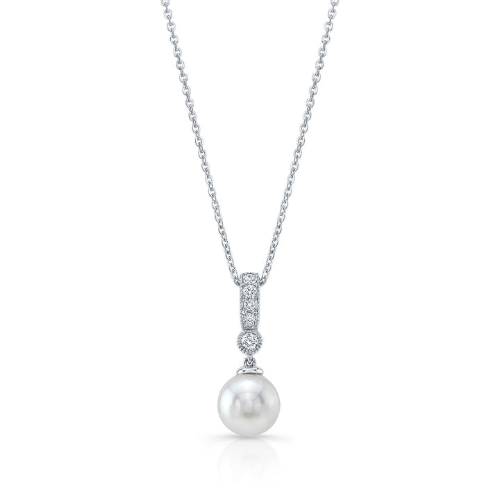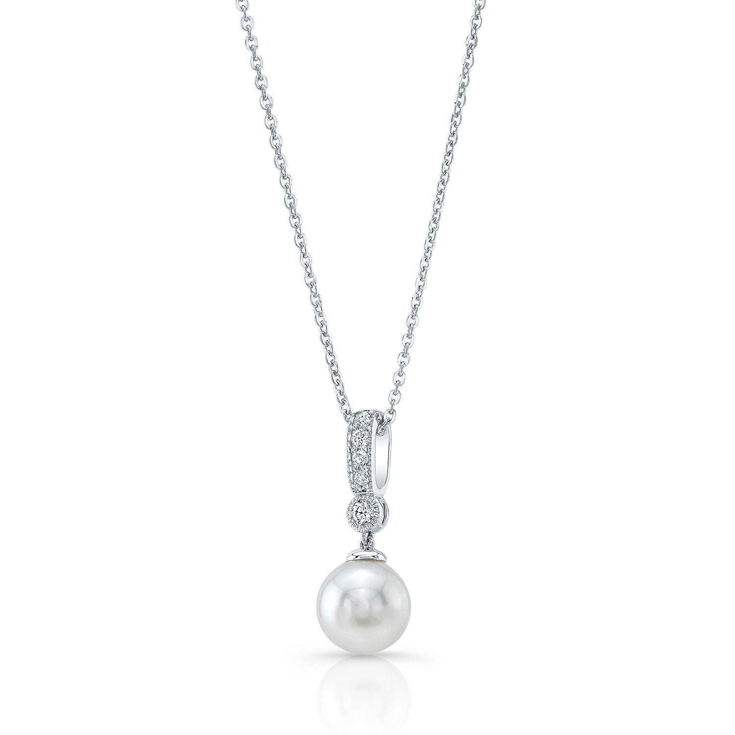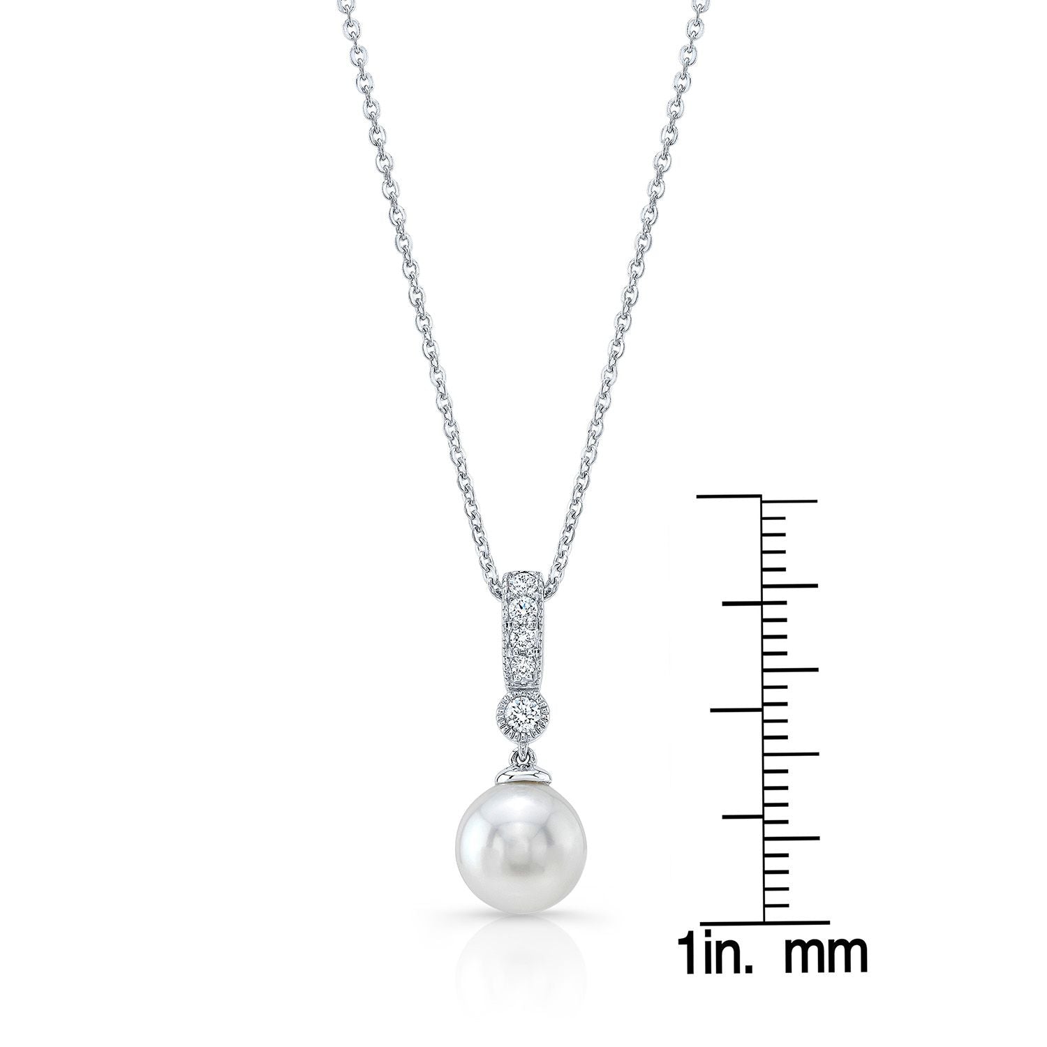จี้ห้อยไข่มุกเพาะเลี้ยงและเพชรพร้อมตัวจับแบบปากกาหนีบและขอบประดับในทองคำขาว 14k (8.0-8.5 มม.) (si)