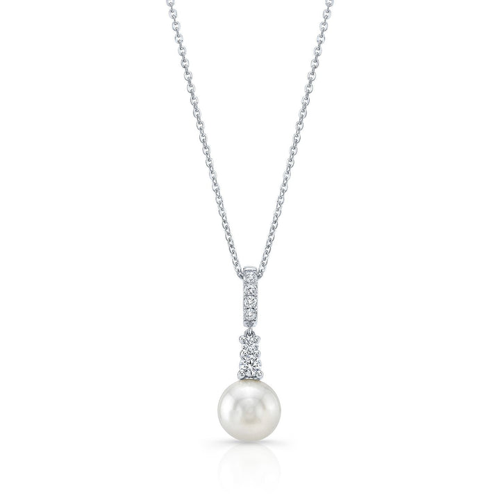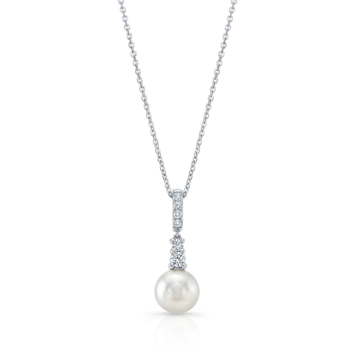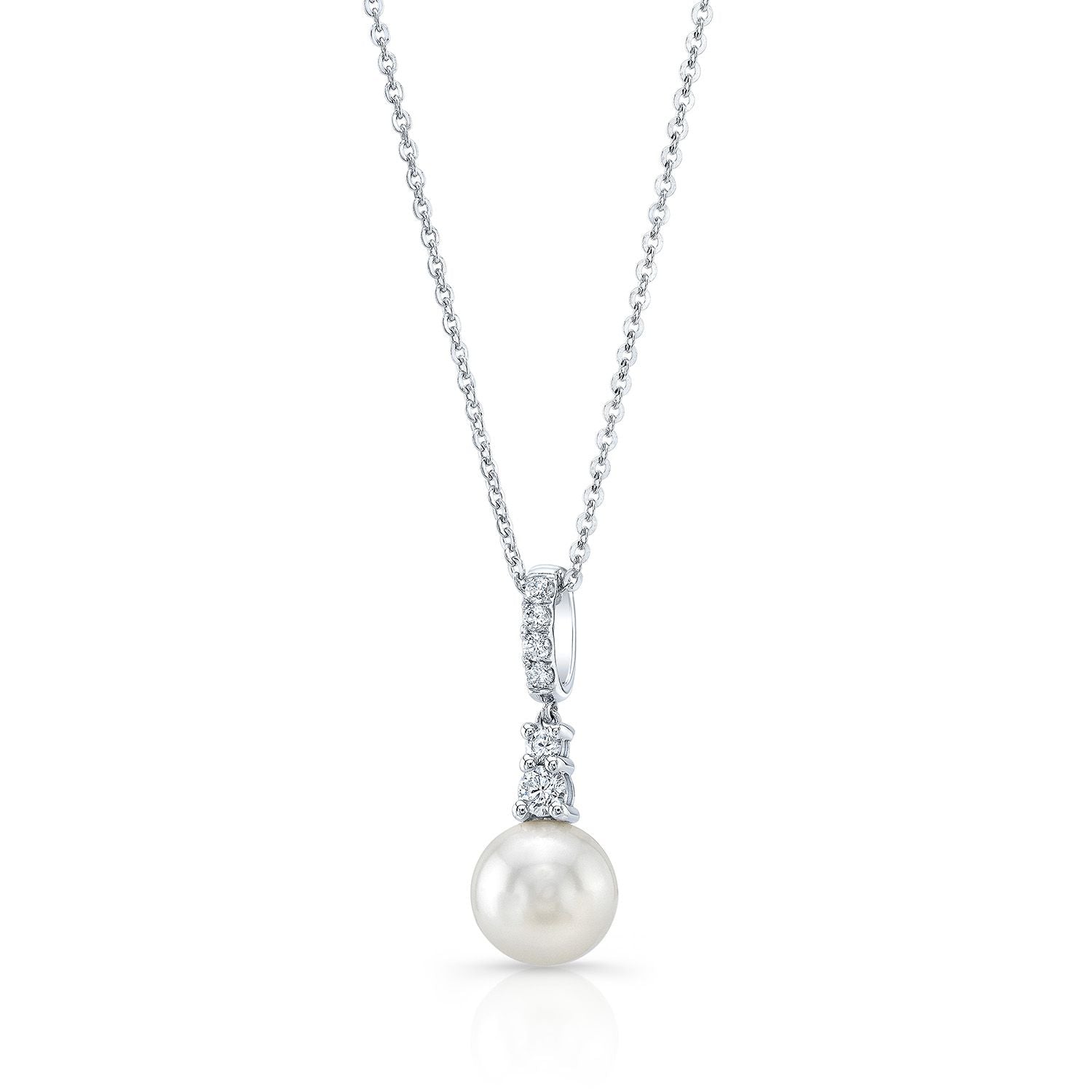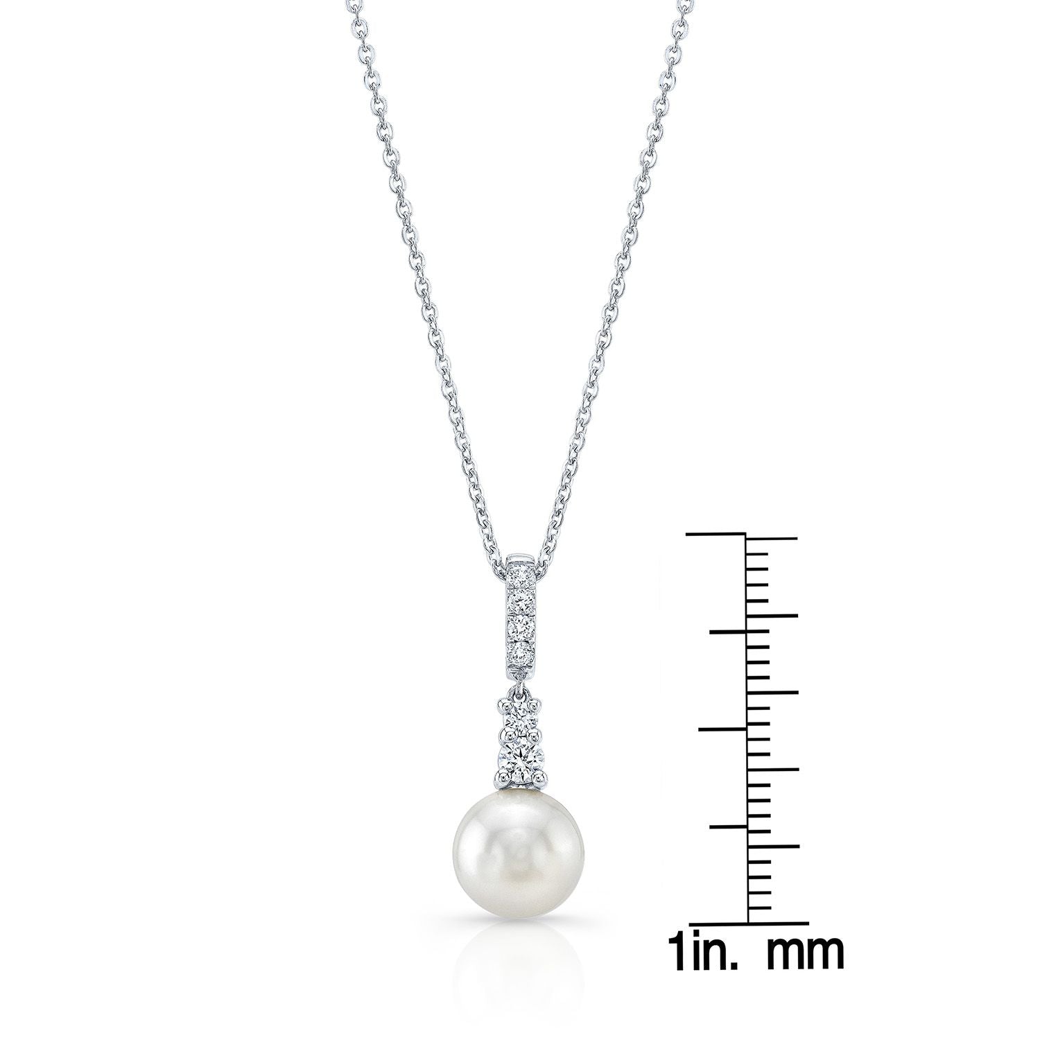 จี้มุกเลี้ยงและเพชรพร้อมตะขอแบบตั้งหนีบไล่ระดับในทองคำขาว 14k (8.0-8.5mm) (si)