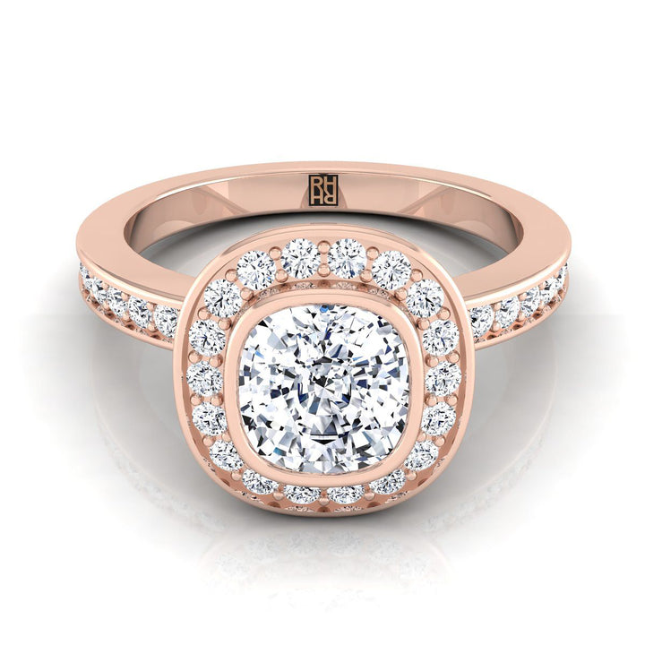 แหวนหมั้นเพชรทรงหมอนทองคำชมพู 14K พร้อมวงแหวนฮาโลและช่อง -3/8ctw