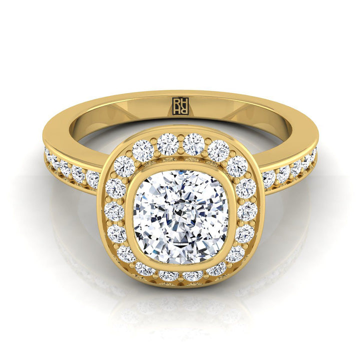 แหวนหมั้นทองคำเหลือง 14K รูปหมอน ประดับเพชรแบบฮาโลและแถบช่อง - 3/8ctw