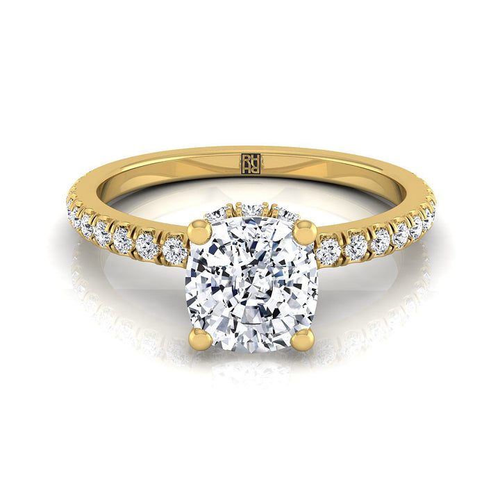 แหวนหมั้นเดี่ยวฝังเพชรแบบฝรั่งเศส 18K ทองเหลืองทรงหมอน พร้อมเพชรล้อมลับขนาด 1/3 กะรัต
