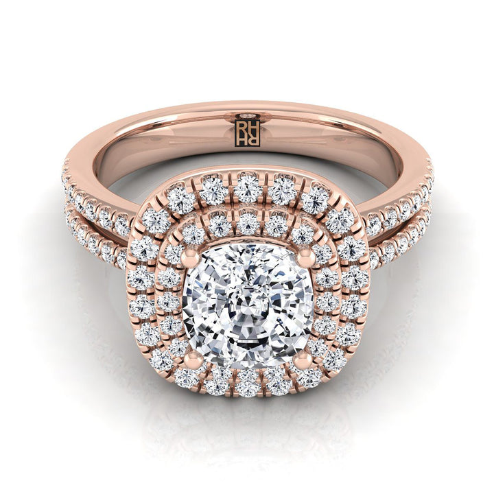 แหวนหมั้นเพชรแบบฮาโล่สองแถวรูปหมอนทองคำชมพู 14K -3/8ctw