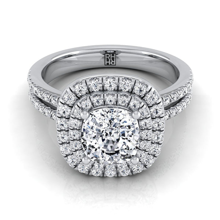 แหวนหมั้นเพชรทรงหมอนแถวคู่แบบเส้นตรงประดับเพชรฮาโลจากทองคำขาว 18K - 3/8ctw