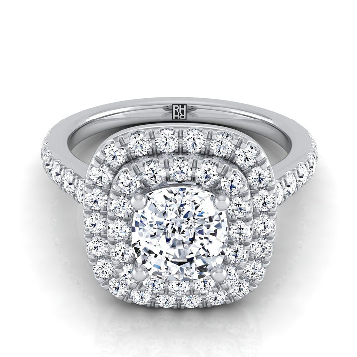แหวนหมั้นเพชรแพลตตินั่มแบบเบาะคู่ประดับเพชรล้อมแบบพาเว่และเส้นตรง - 3/4 กะรัตรวม