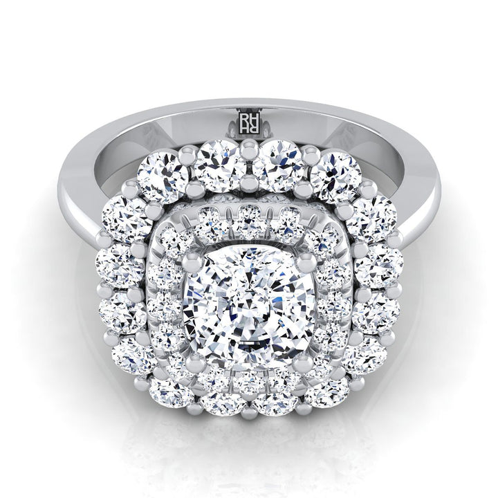 แหวนหมั้นเพชรแพลทินัมแบบเบาะ ดับเบิลฮาโล ดอกไม้ระเบิดแสงอาทิตย์ -1ctw