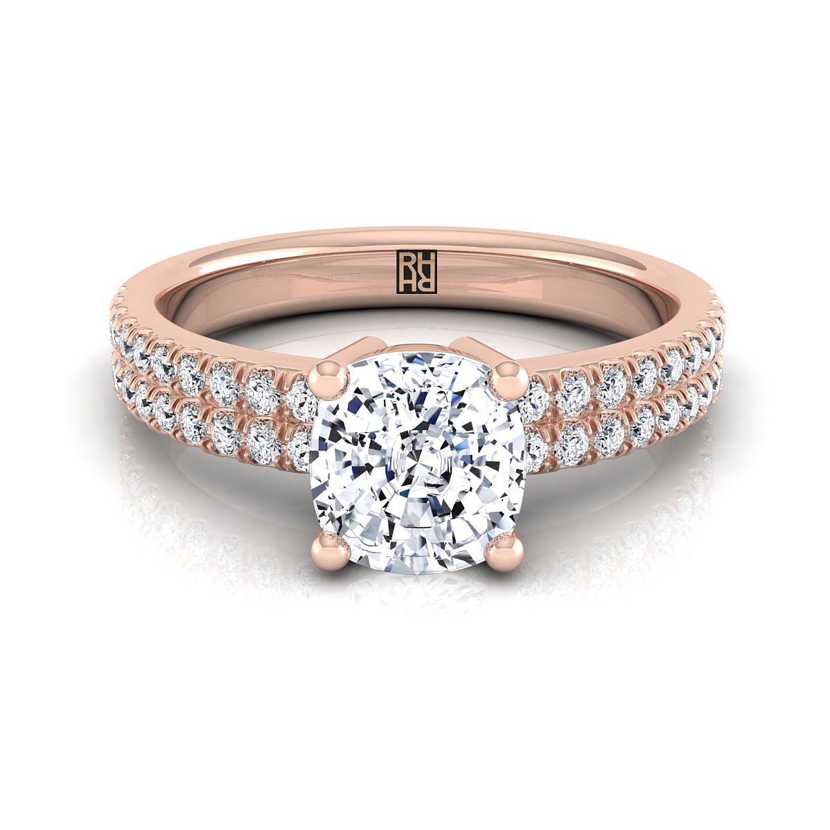 แหวนหมั้นเพชรแบบดับเบิลพาเว่รูปหมอนทองคำชมพู 14K - 1/4ctw
