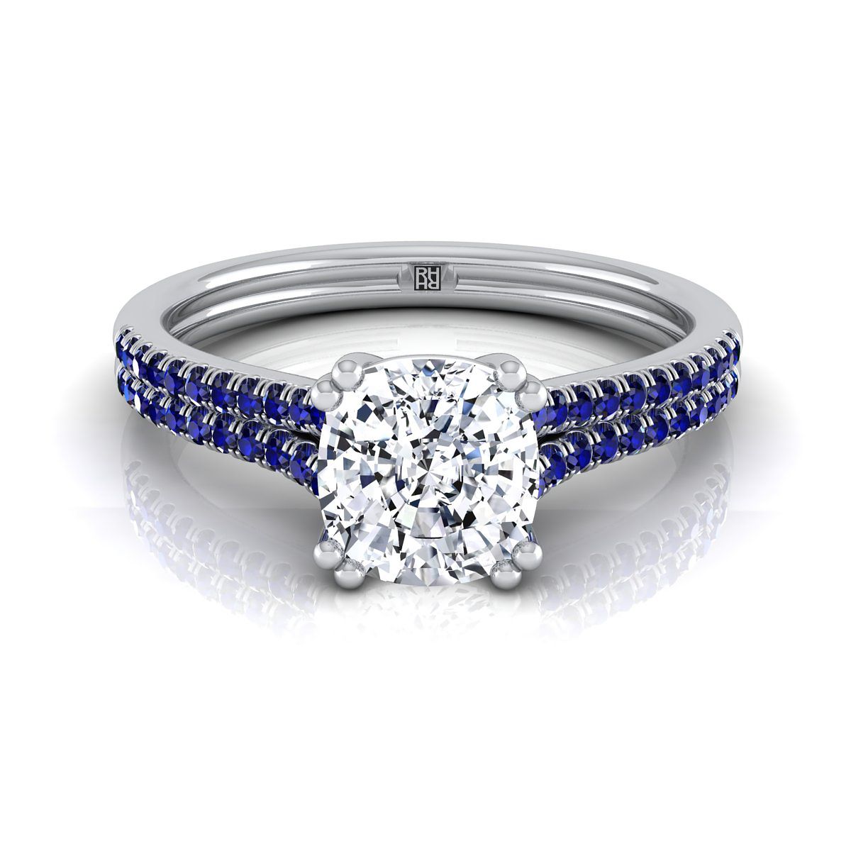 แหวนหมั้นเพชรฝรั่งเศสแบบปาเว่ 14K ทองขาวรูปทรงหมอน พร้อมแถวคู่และหนามเตยคู่