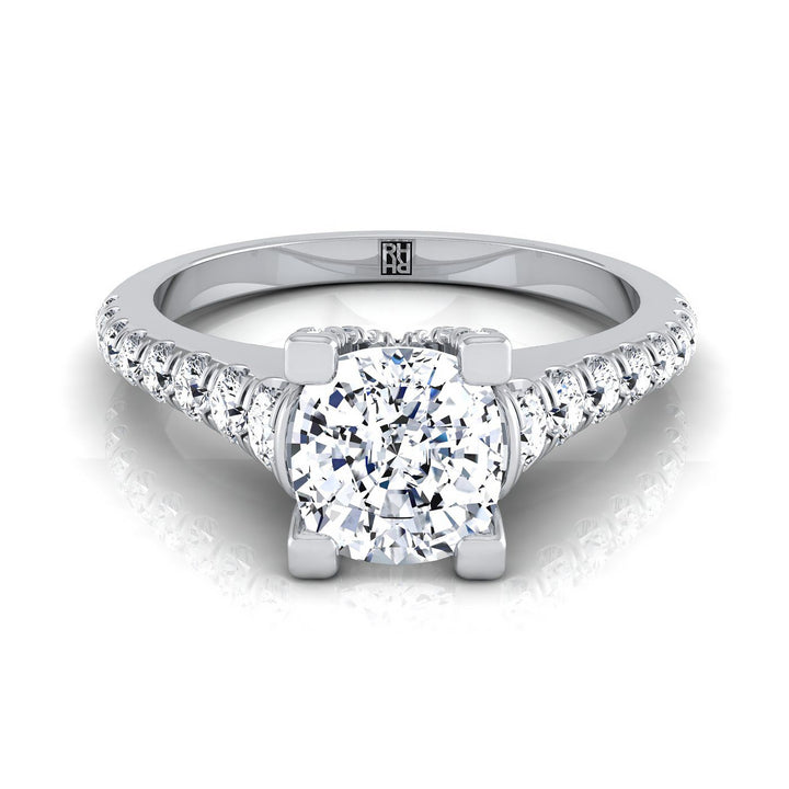 แหวนหมั้นเพชรเม็ดหมอน 14K ทองคำขาว ประดับเพชรแบบปาเว่และหนามเตย เส้นตรง - 1/2ctw