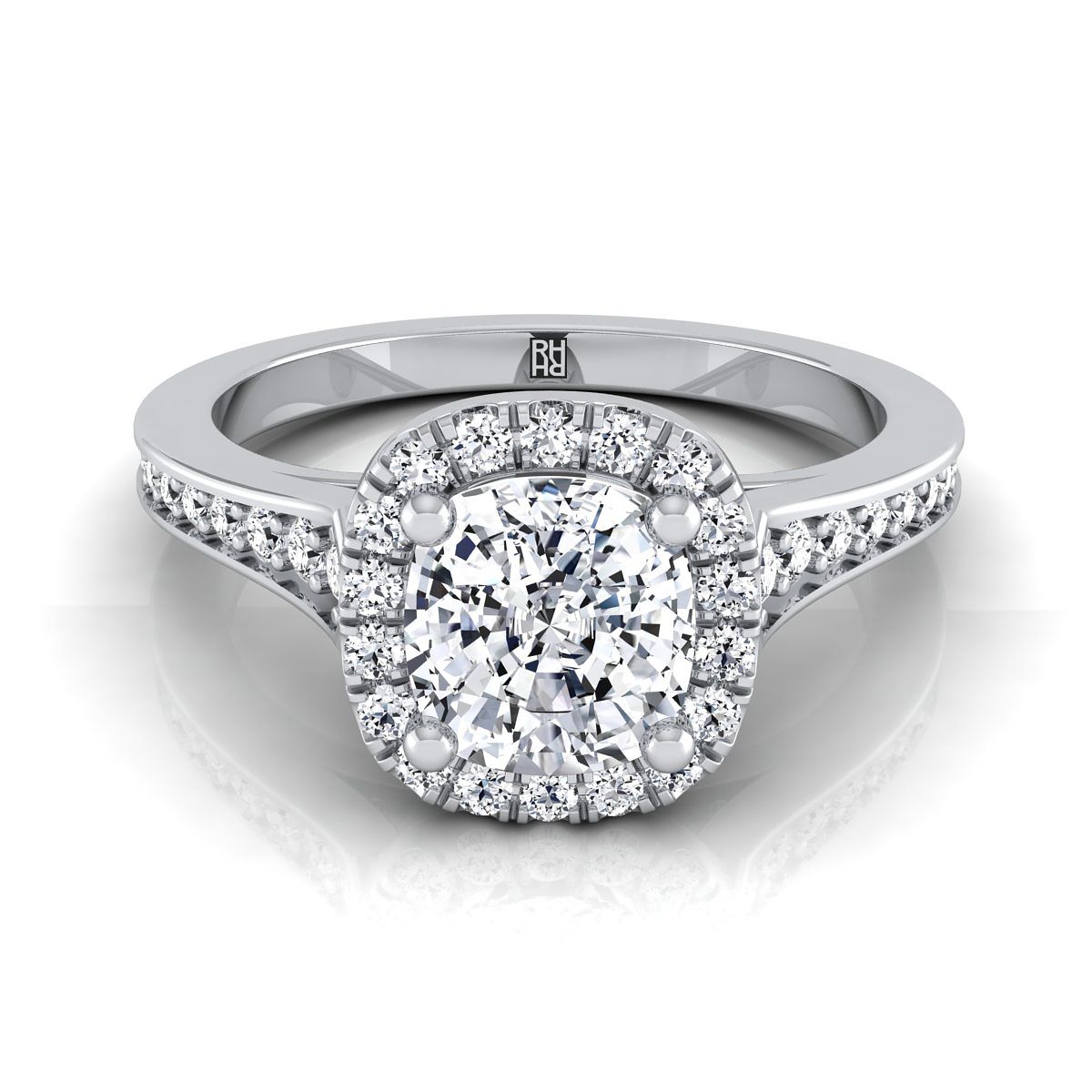 แหวนหมั้นเพชรทรงหมอนคลาสสิกแบบฮาโล่ทองคำขาว 14K พร้อมช่องฝรั่งเศสแบบปาเว่ - 1/3ctw