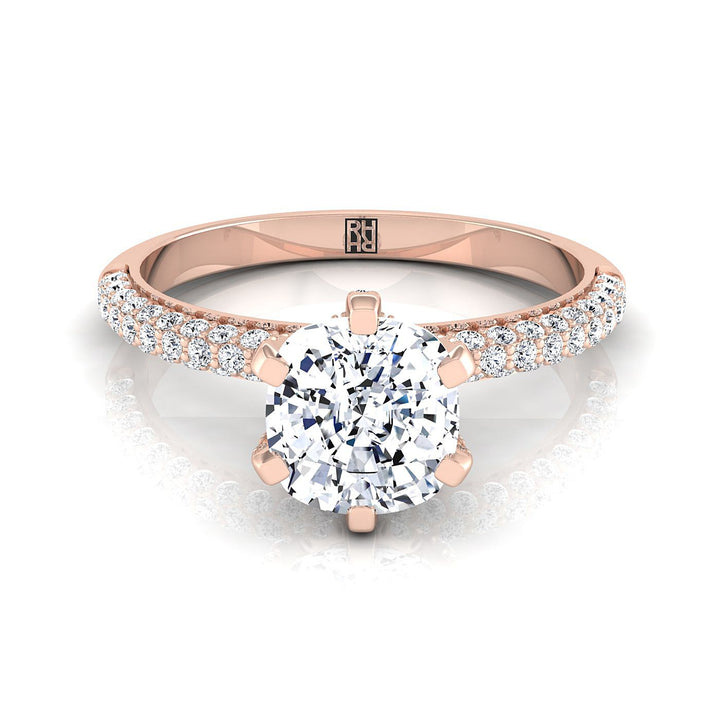 แหวนหมั้นแบบเรียบง่าย เพชรทรงหมอน 14K สีทองกุหลาบ สามแถว ฝรั่งเศส ปาเว่ -1/3ctw