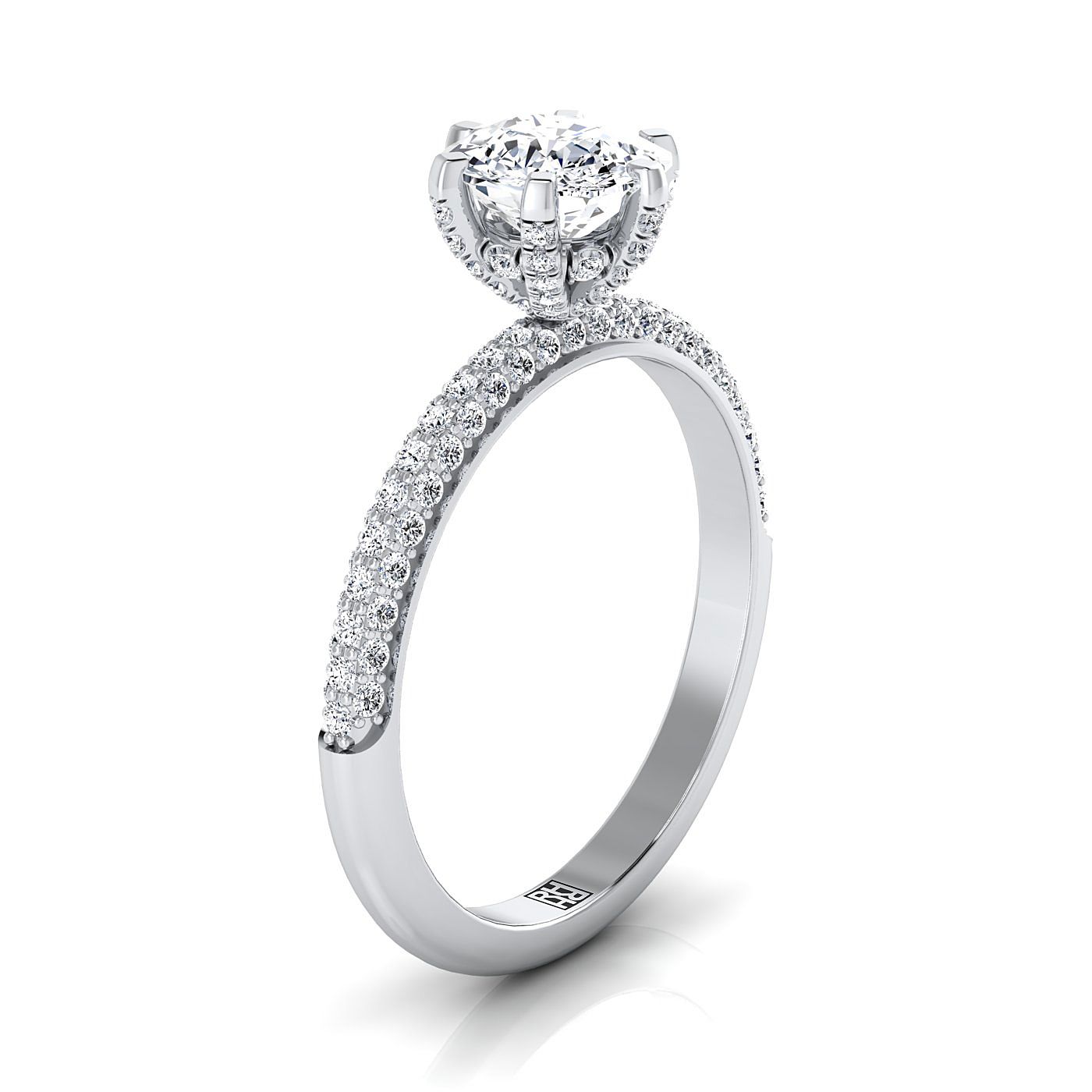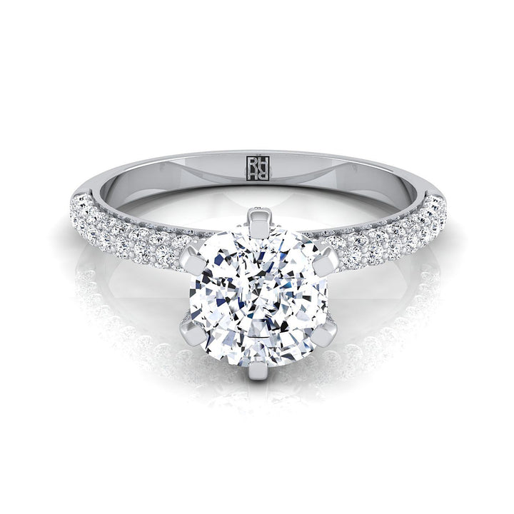 แหวนหมั้นเรียบง่ายทองคำขาว 14K ทรงหมอน ประดับเพชรสามแถวแบบฝรั่งเศส 1/3 กะรัตรวม