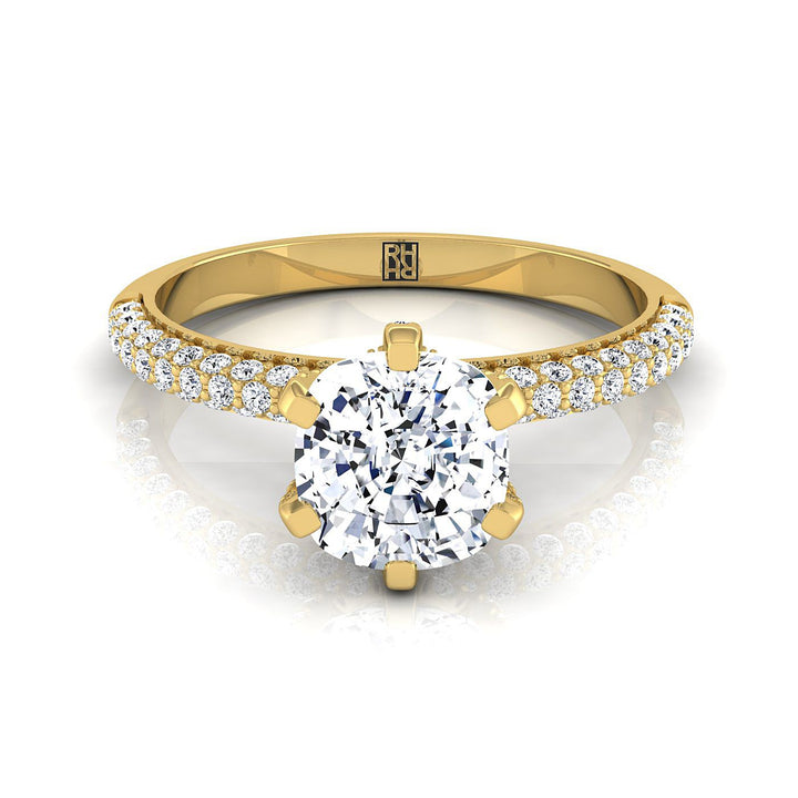 แหวนหมั้นเรียบง่ายฝรั่งเศสประดับเพชรทรงหมอนสามแถวทองคำเหลือง 18K - 1/3 กะรัตรวม
