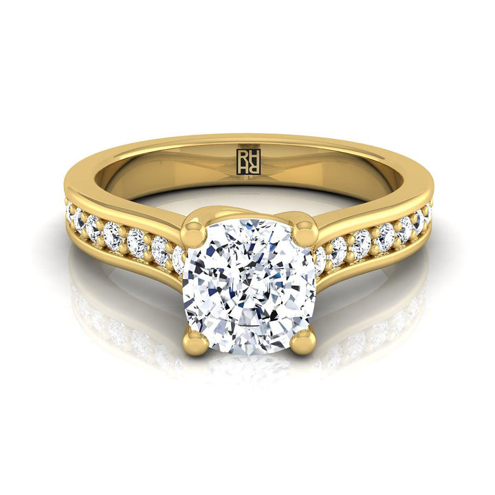 แหวนหมั้นประดับเพชรแบบช่องทองคำเหลือง 14K ทรงหมอน - 1/3 กะรัตรวม