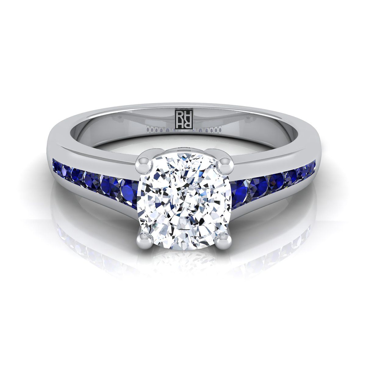แหวนหมั้นช่องประดับไพลินสีน้ำเงินทรงหมอนทันสมัยทองคำขาว 14K แบบเรียว