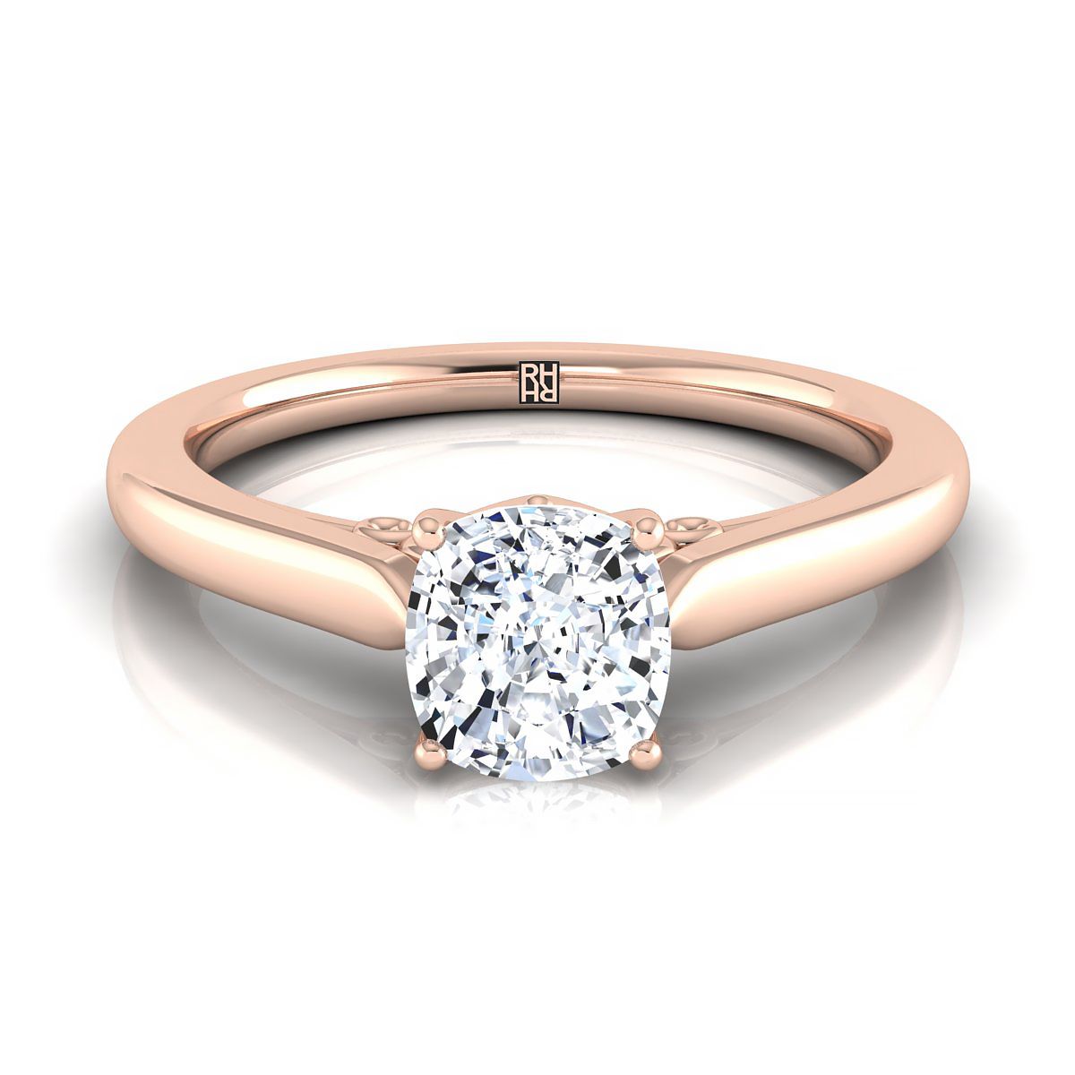 แหวนหมั้นเดี่ยวแบบสบายที่มีการออกแบบกรอบแบบคูชั่นในทองคำชมพู 14K