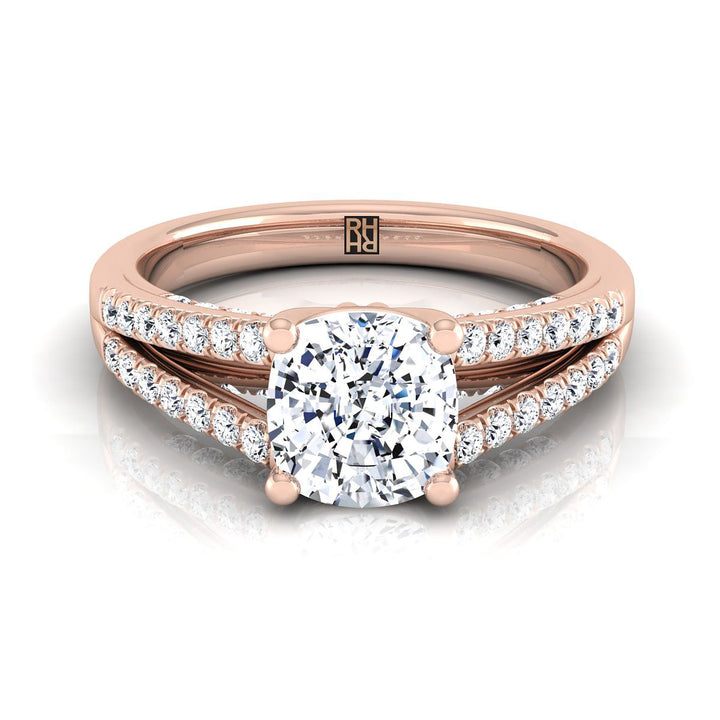 แหวนหมั้นเพชรทรงหมอนทองคำชมพู 14K แบบแยกขา French Pave - 1/3ctw