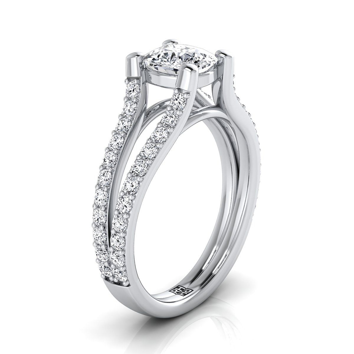 คลาสสิกและสง่างาม แหวนหมั้นเพชรทรงหมอนทองคำขาว 18k นี้แสดงให้เห็นถึงเพชรเจียระไนแบบ Brilliant Cut (h-i/vs 0.58ctw) ที่ประดับอย่างสวยงามในแบบ Pave Set บนแหวนที่แยกเป็นสองขา สร้างประกายระยิบระยับที่งดงามให้ทุกคนได้ชื่นชม