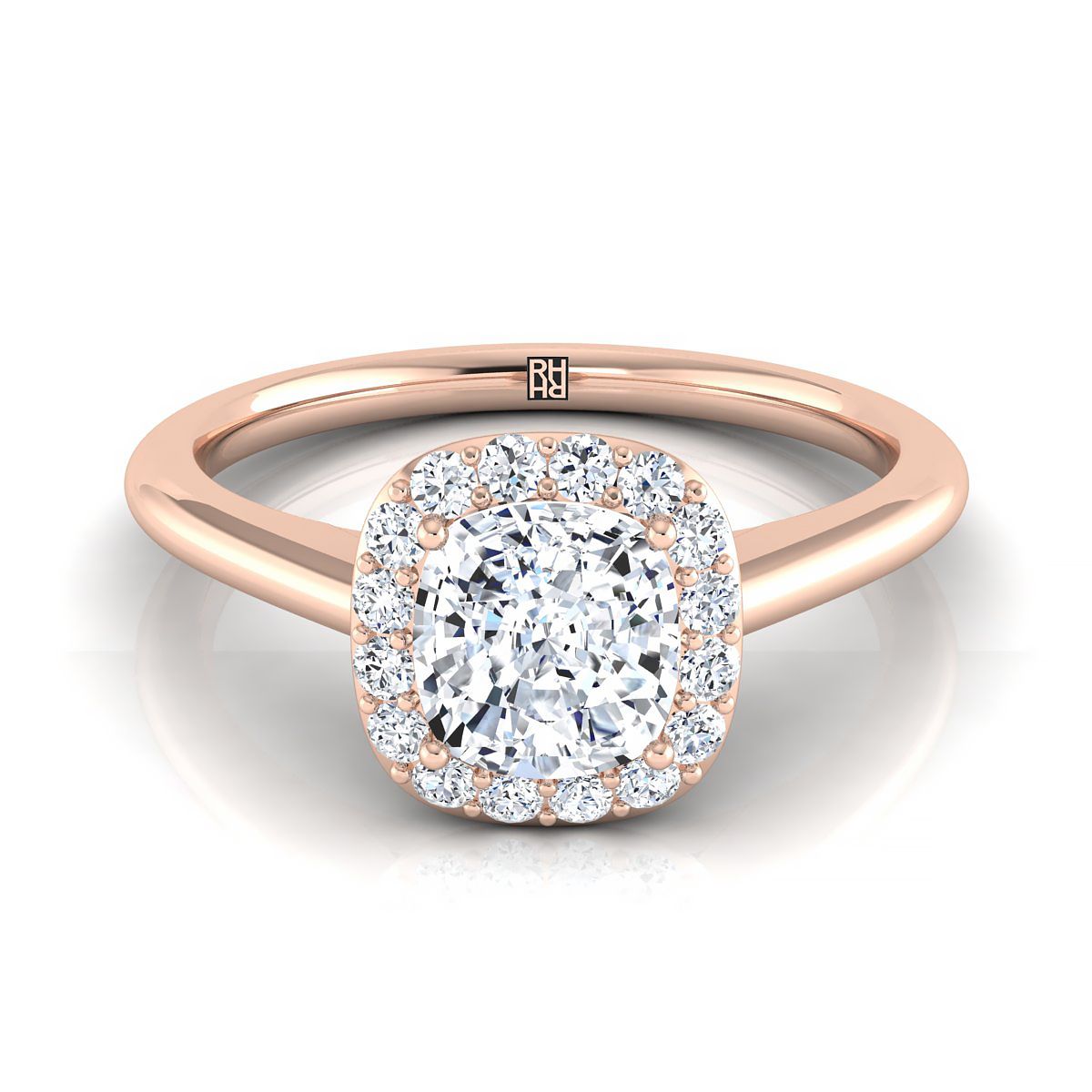 แถลงการณ์คลาสสิกของสไตล์ แหวนหมั้นแบบคุชชั่นคัทฮาโล่พาเว่แสดงให้เห็นเพชรที่ตัดอย่างสวยงาม (h-i/vs 0.20 Ctw) ตั้งอยู่ในกรอบทองกุหลาบ 14k แบบคลาสสิก