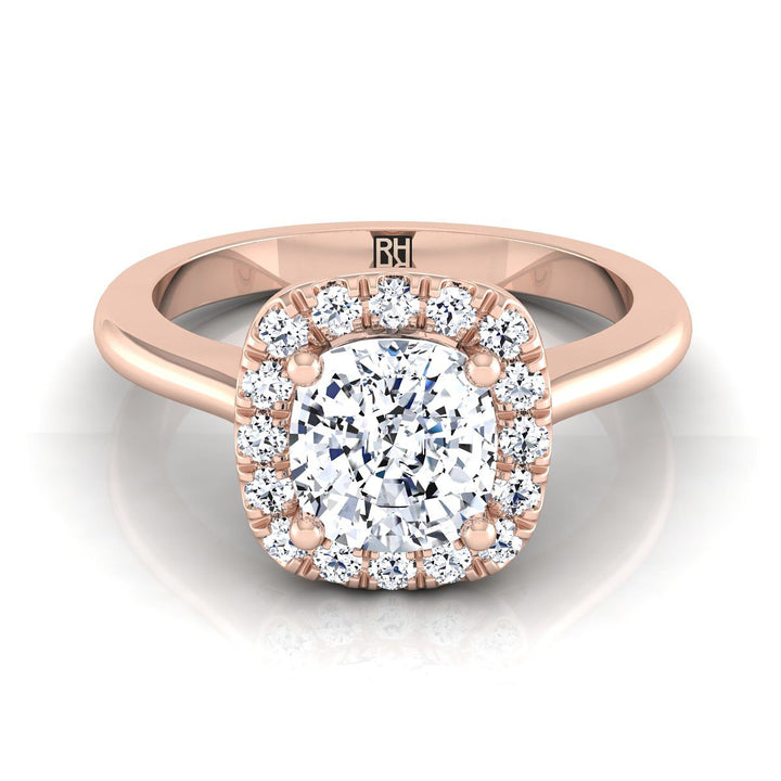 แหวนหมั้นเพชรคลาสสิกแบบฮาโล่ทรงหมอนทองคำชมพู 14K - 1/4ctw