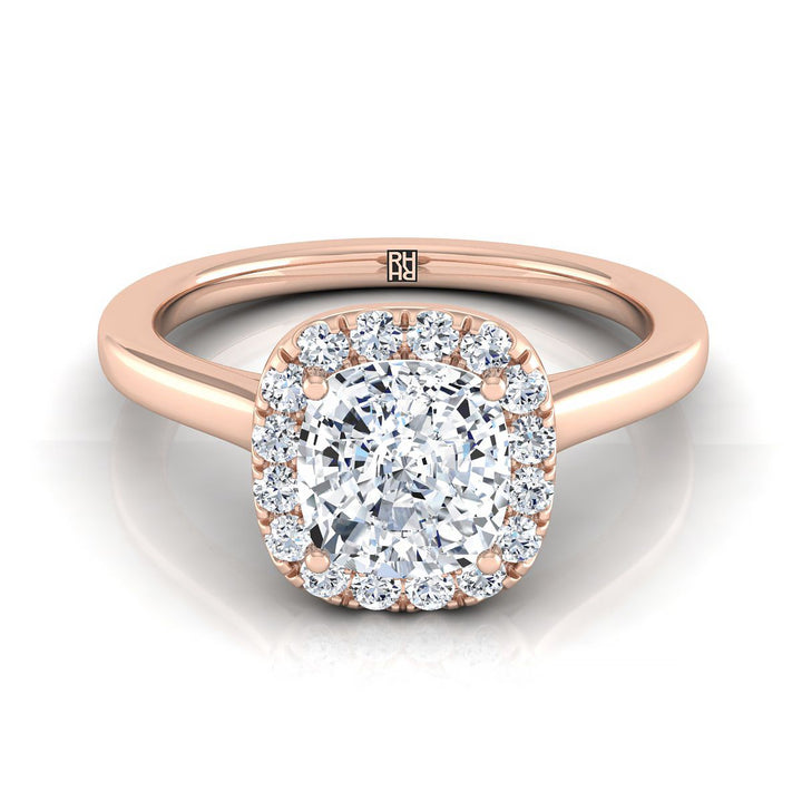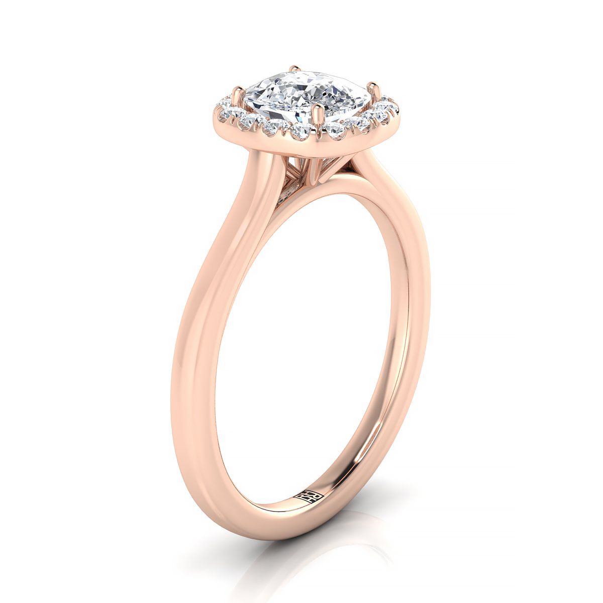 แหวนหมั้นเพชรทรงหมอนแบบโมเดิร์นฮาโล่ฝรั่งเศสประดับเพชร 14K สีทองกุหลาบ -1/6ctw