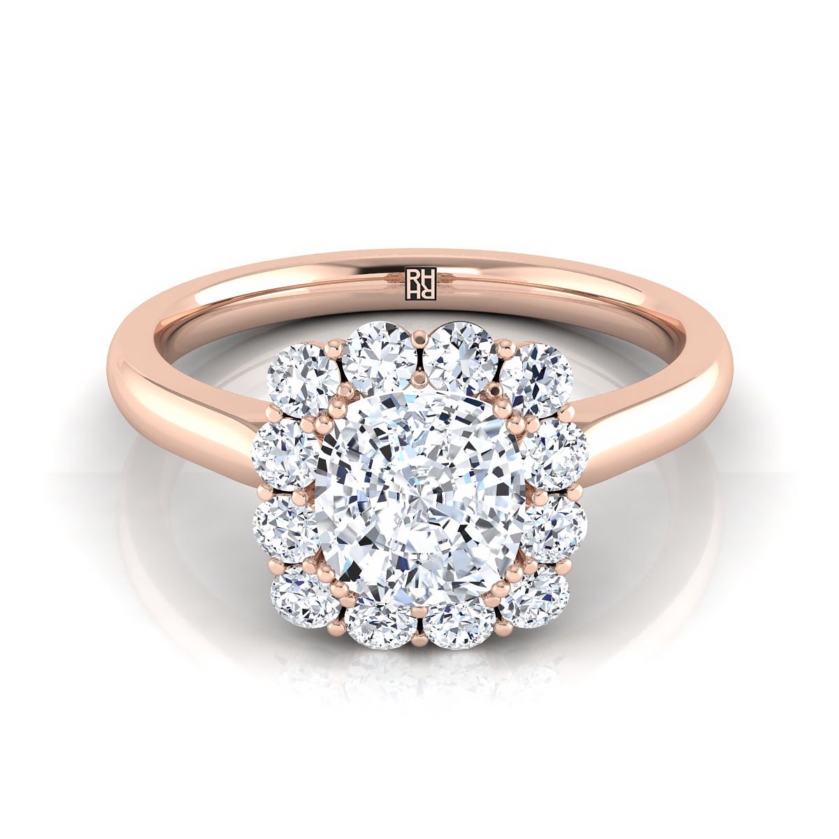 แหวนหมั้นเพชรทรงหมอนทองคำชมพู 14K แบบดอกไม้ - 1/3ctw