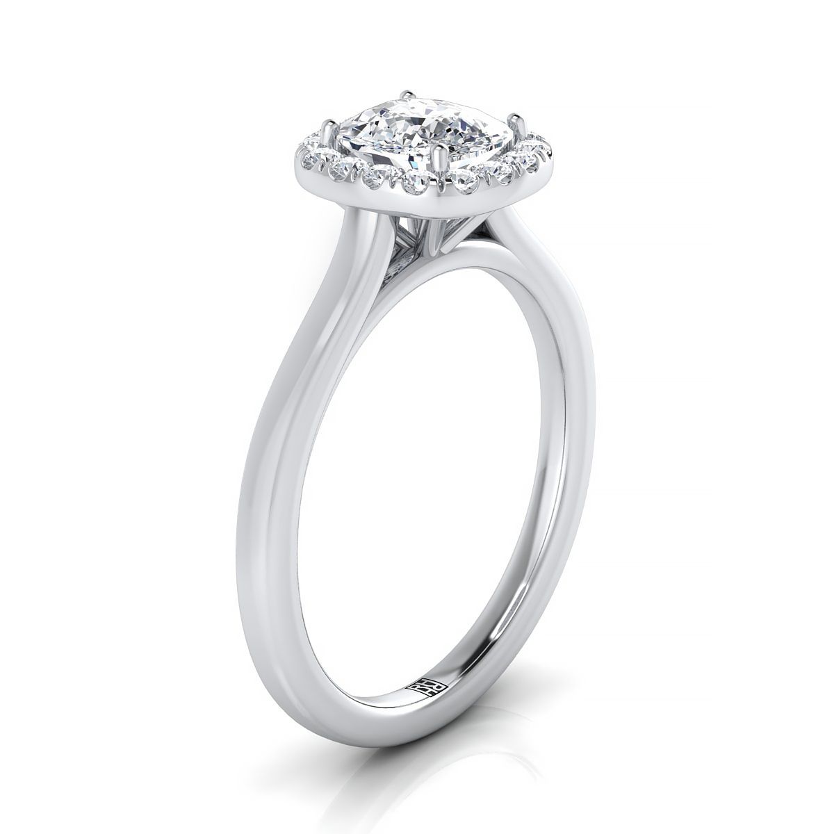 แหวนหมั้นเพชรทรงหมอนสไตล์โมเดิร์นแบบฮาโลว์ฝรั่งเศสประดับเพชรปาเว่ทองคำขาว 14K - 1/6ctw