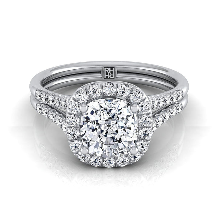 แหวนหมั้นทองคำขาว 14K ดีไซน์หมอน ฝรั่งเศส ประดับเพชรแบบปาเว่ แยกชิ้นแบบแหวนฮาโล - 3/8ctw