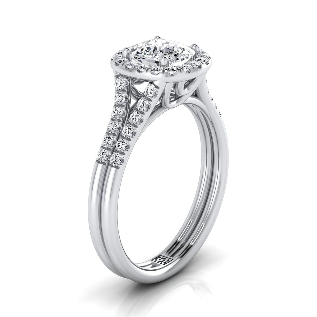 แหวนหมั้นทองคำขาว 18K ทรงหมอน ฝรั่งเศสประดับเพฟ แยกชั้น ฮาโล - 3/8ctw