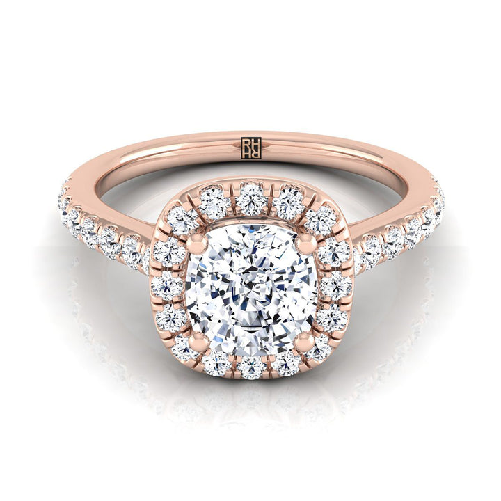 แหวนหมั้นสไตล์คาเธดรัลเพชรทรงหมอน 14K สีโรสโกลด์ แบบปูเพชร - 1/2ctw