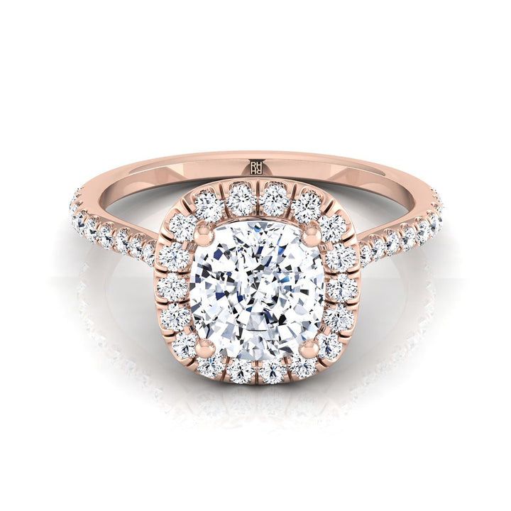 แหวนหมั้นเพชรทรงหมอน 14K สีทองกุหลาบ แบบแชร์พร็องก์ ฮาโล -3/8ctw
