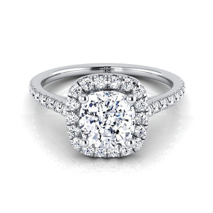 แหวนหมั้นทองคำขาว 14K ทรงหมอน ประดับเพชรแบบปาเว่และฮาโล - 1/3 กะรัตรวม