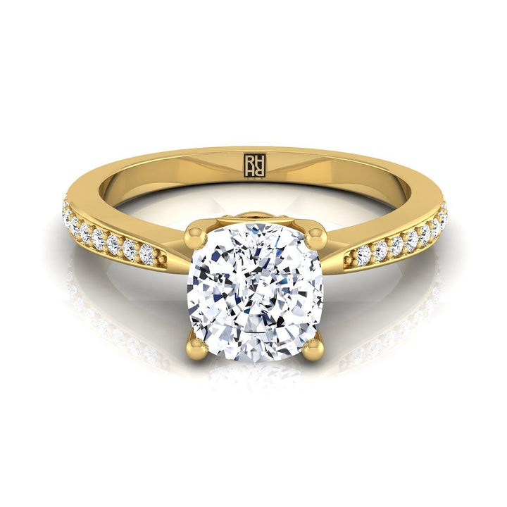 แหวนหมั้นเพชรทรงหมอนแบบเรียวประดับเพชรปาเว่ทองคำเหลือง 18K - 1/8ctw
