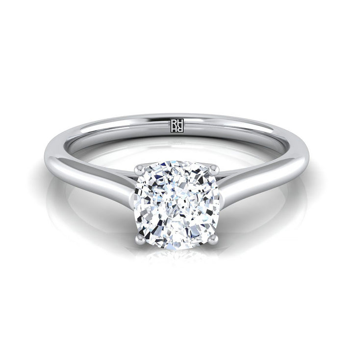 แหวนหมั้นเดี่ยวแบบสบายสไตล์วิหาร ทรงหมอนทองคำขาว 18K
