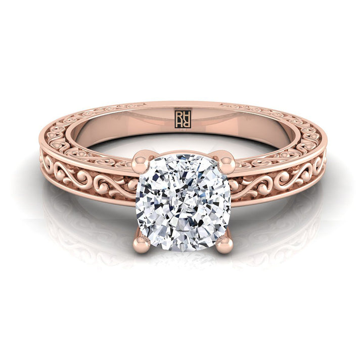 แหวนหมั้นแบบโบราณทองคำชมพู 14K แบบหมอนที่มีการแกะสลักด้วยมือ