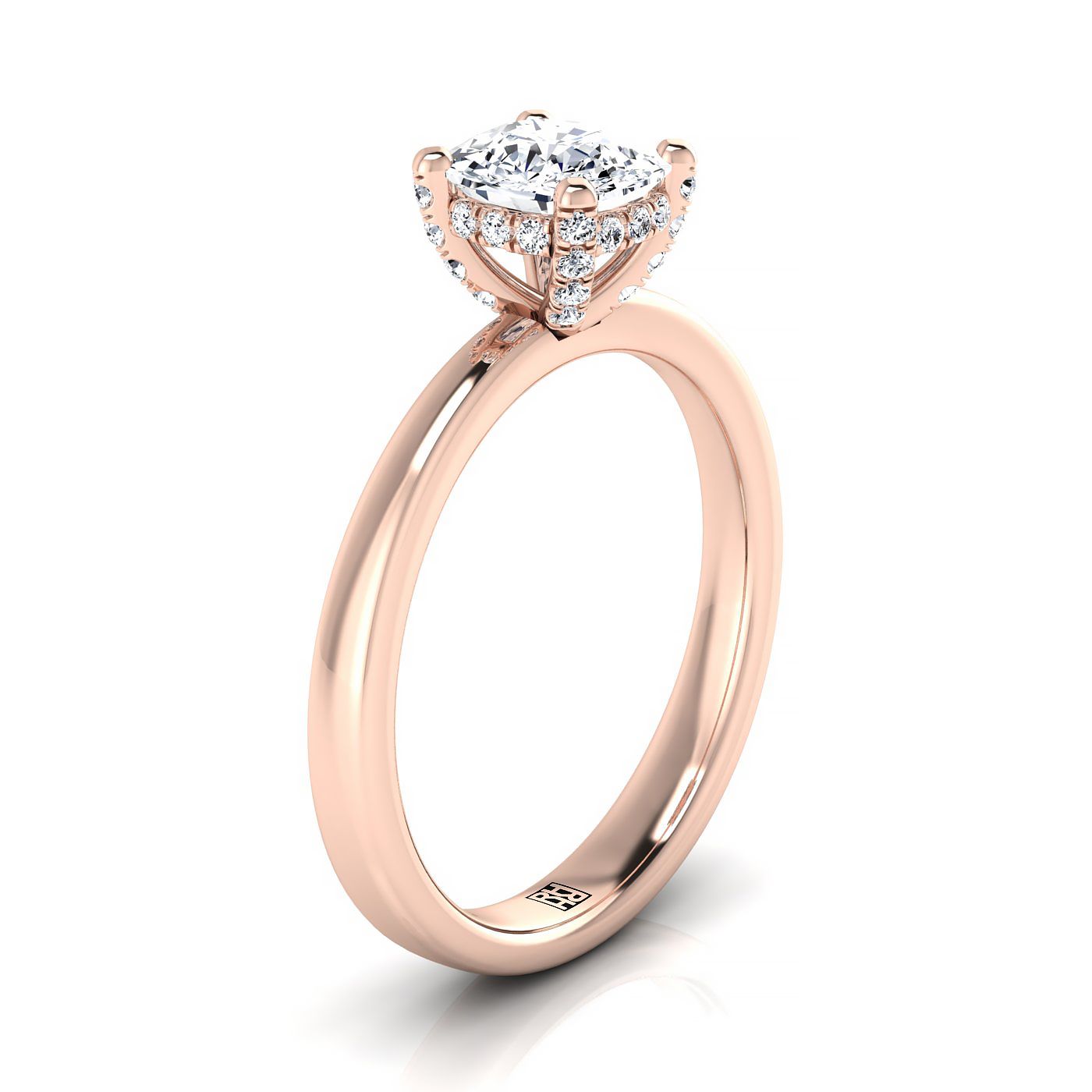 แหวนหมั้นเดี่ยวทองคำชมพู 14K ประดับเพชรแบบหมอน พร้อมกรงเล็บและฮาโลลับ -1/10ctw