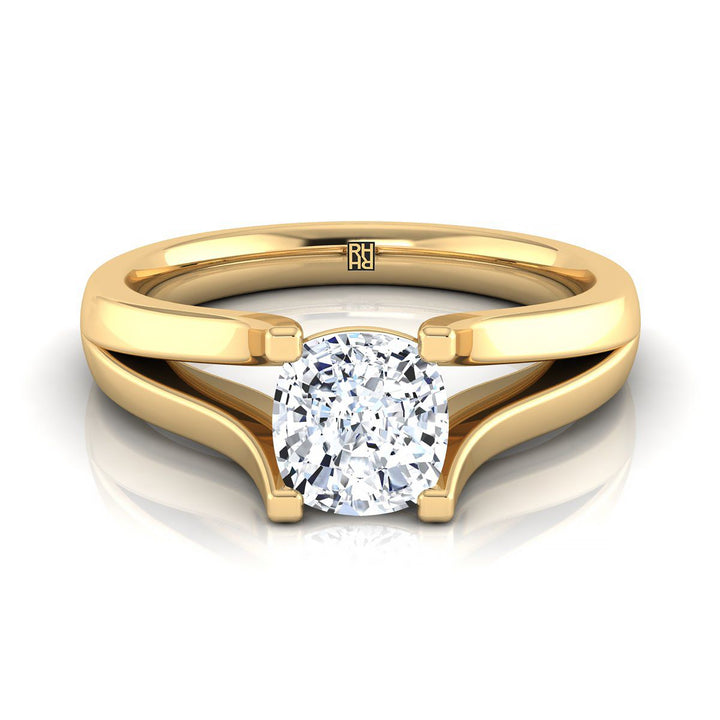 แหวนหมั้นเดี่ยวแบบแยกขา ดีไซน์ทันสมัย ทองคำเหลือง 18K ทรงหมอน