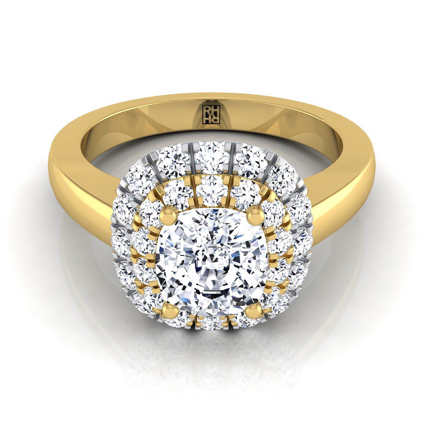 แหวนหมั้นเพชรทรงหมอน 18K ทองเหลือง สไตล์บันไดขั้นสองชั้น