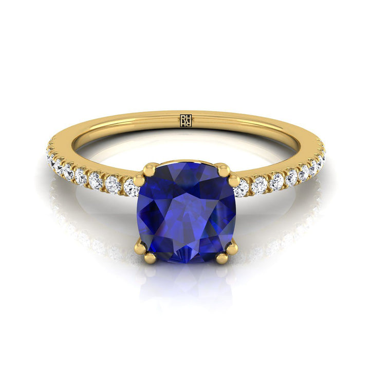 แหวนหมั้นเพชรแบบหนีบคู่ฝรั่งเศสเรียบง่ายประดับแซฟไฟร์ทรงหมอนทองคำเหลือง 14K - 1/6 กะรัตรวม