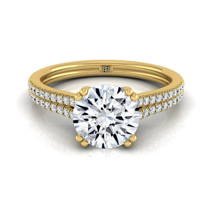 แหวนหมั้นฝรั่งเศสแบบฝังเพชรสองแถวสองกรงเล็บทรงกลมเจียระไนแบบ Brilliant ทองคำเหลือง 18K - 1/6ctw