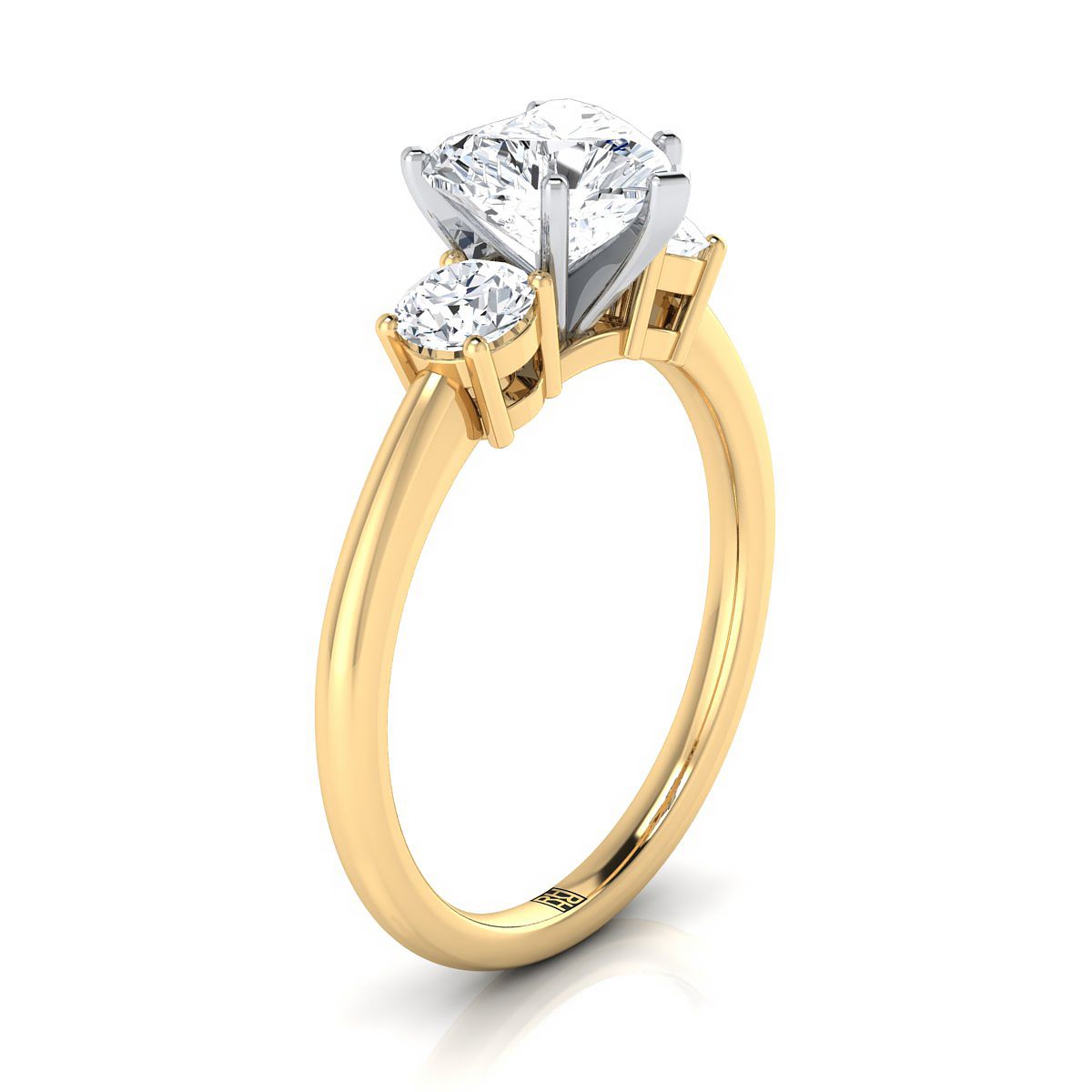 แหวนหมั้นเพชรรูปหัวใจตรงกลางทองคำเหลือง 18K ประกบเพชรรูปกลมสามเม็ดอย่างลงตัว - 1/4ctw