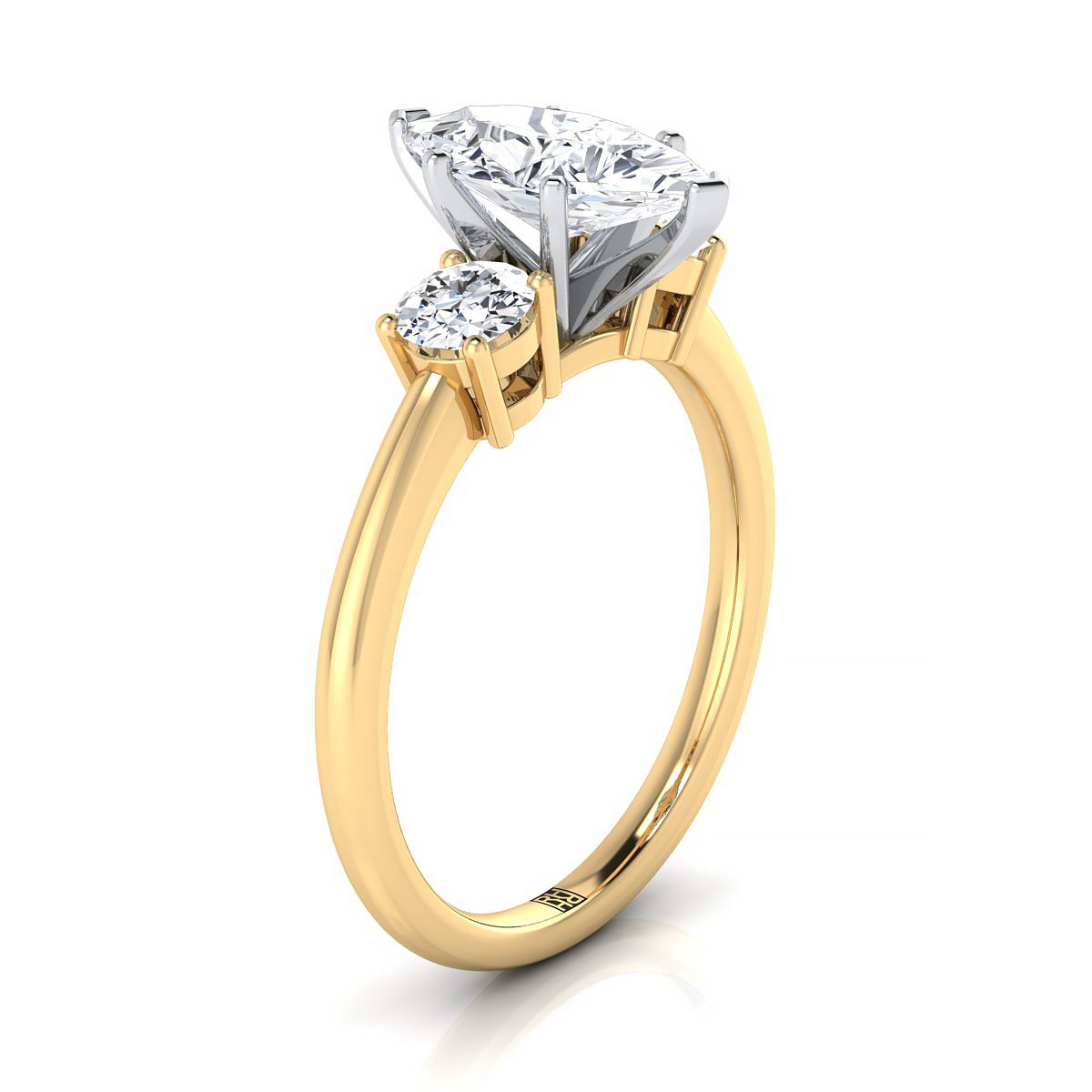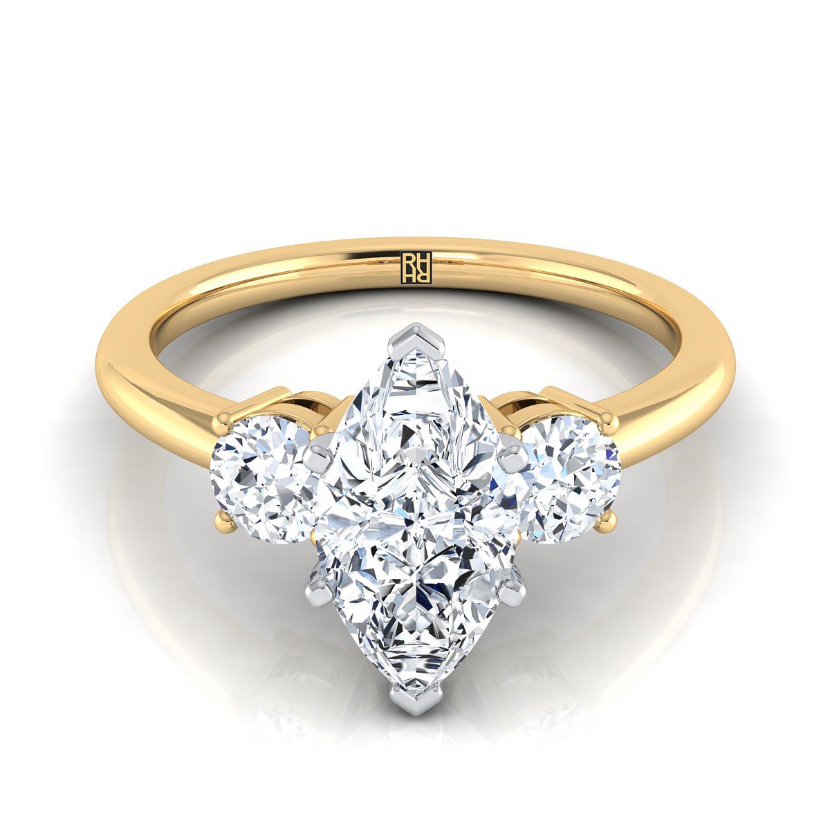 แหวนหมั้นเพชรสามเม็ดทรงกลมที่เข้าคู่กันอย่างสมบูรณ์แบบ ประดับเพชรทรงมาร์คีส์ทองคำเหลือง 18K - 1/4ctw