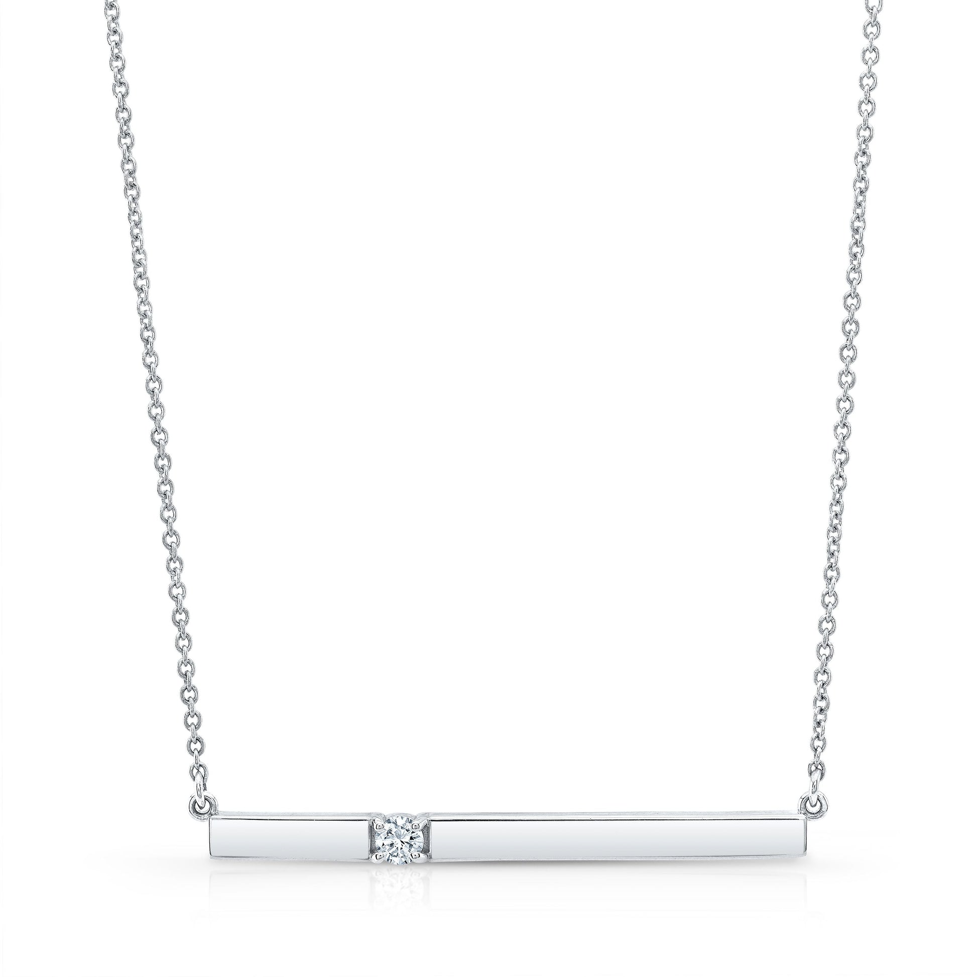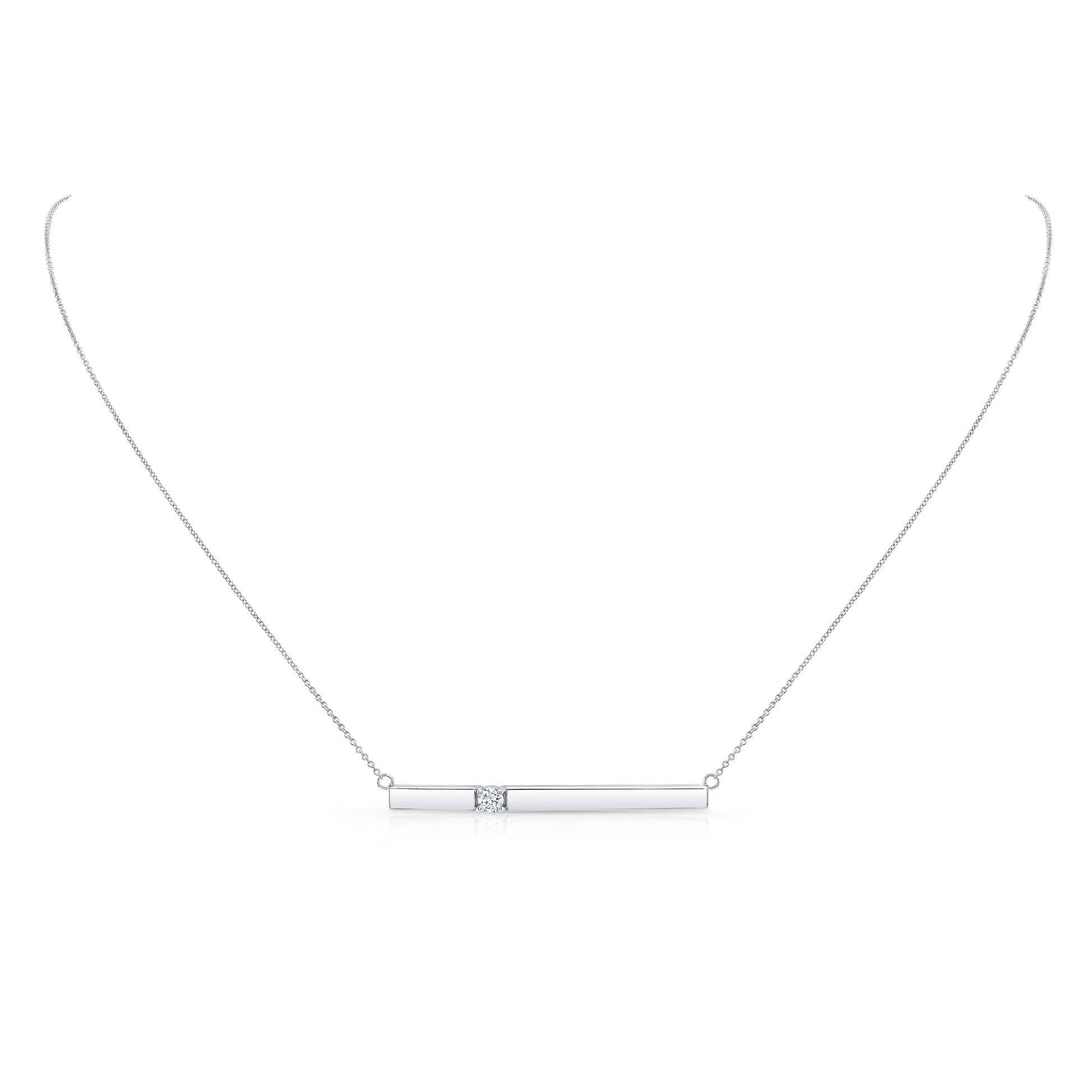 สร้อยคอแท่งทองคำขาว 14 กะรัต พร้อมเพชรเจียระไนแบบกลม 1 เม็ด น้ำหนัก 0.10 กะรัต และโซ่โรโล่ยาว 17 นิ้ว