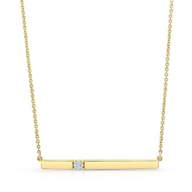 สร้อยคอบาร์เพชรทรงกลมเจียระไนแบบ Brilliant 14 กะรัต สี I/ความสะอาด VS2 น้ำหนักรวมขั้นต่ำ 0.10 กะรัต