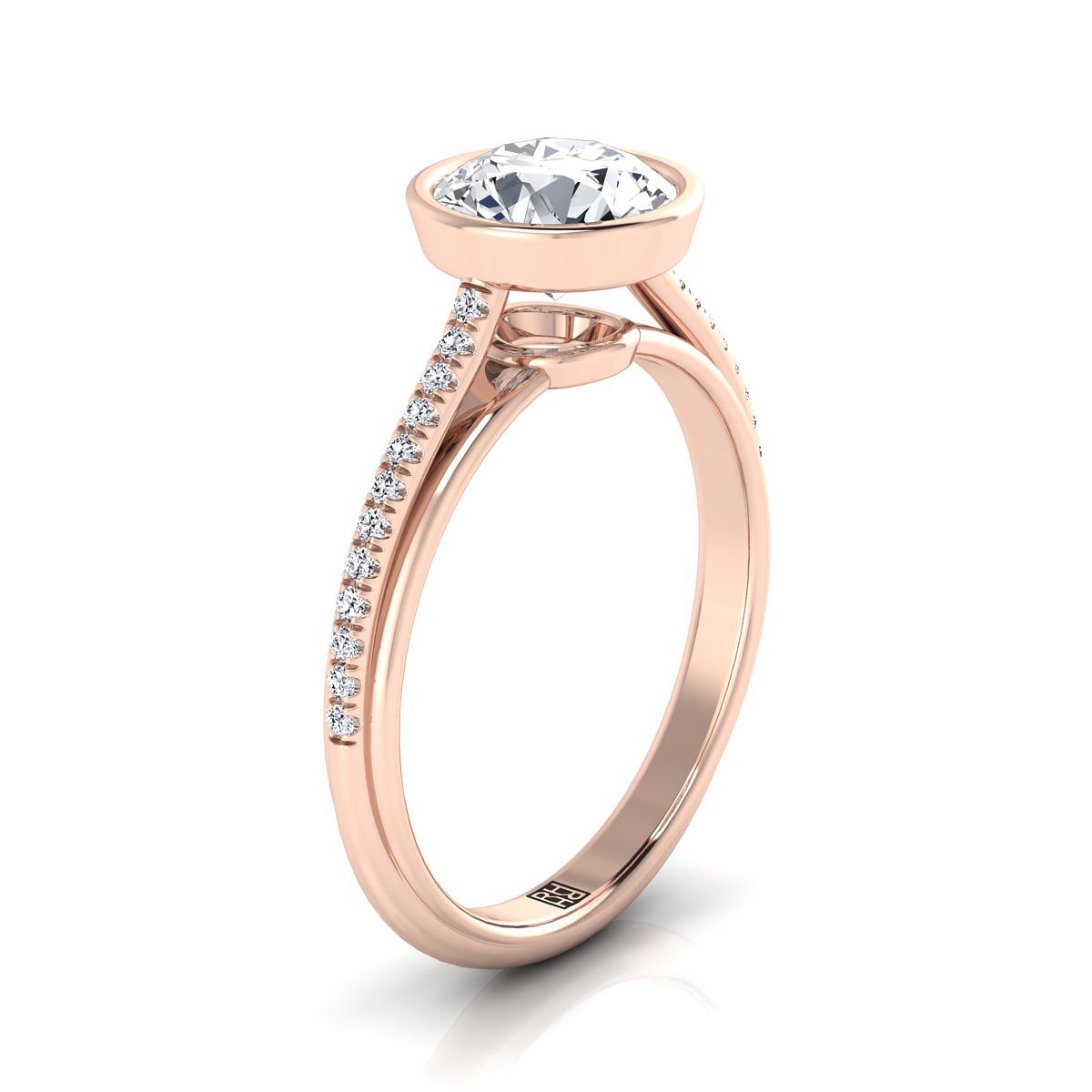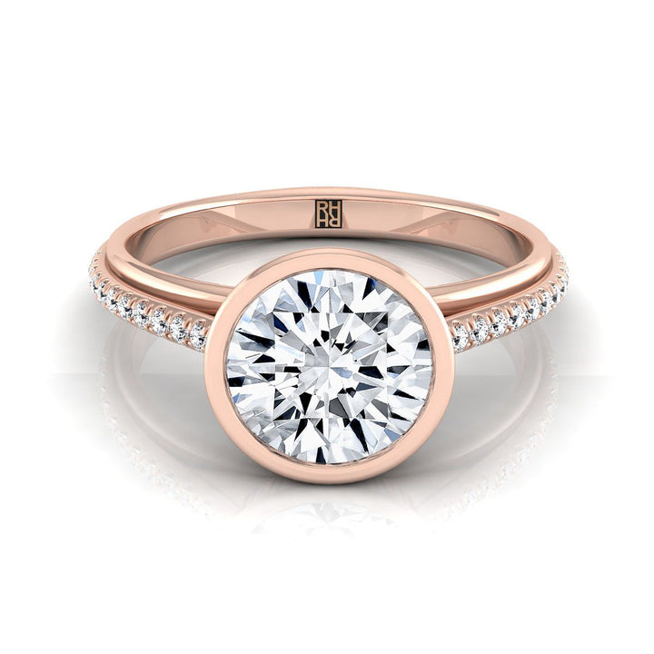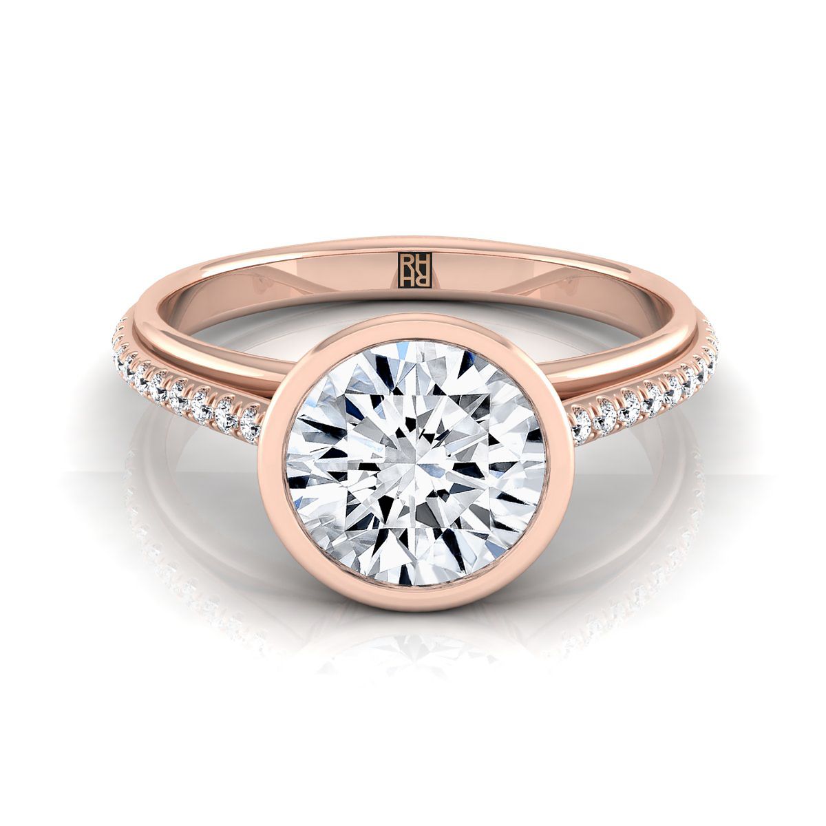 แหวนหมั้นแบบโมเดิร์นขอบเบเซลเส้นตรงเพชรกลมเจียระไนแบบ Brilliant ทองกุหลาบ 14K - 1/10ctw