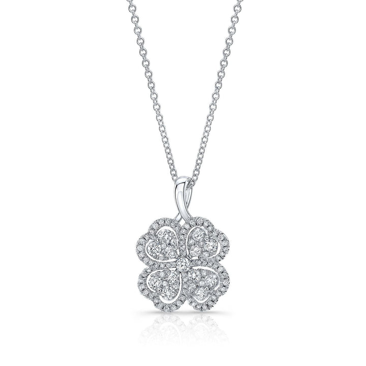 จี้โคลเวอร์ 4 ใบประดับเพชรกลุ่มและไมโครพร็องค์ในทองคำขาว 14k