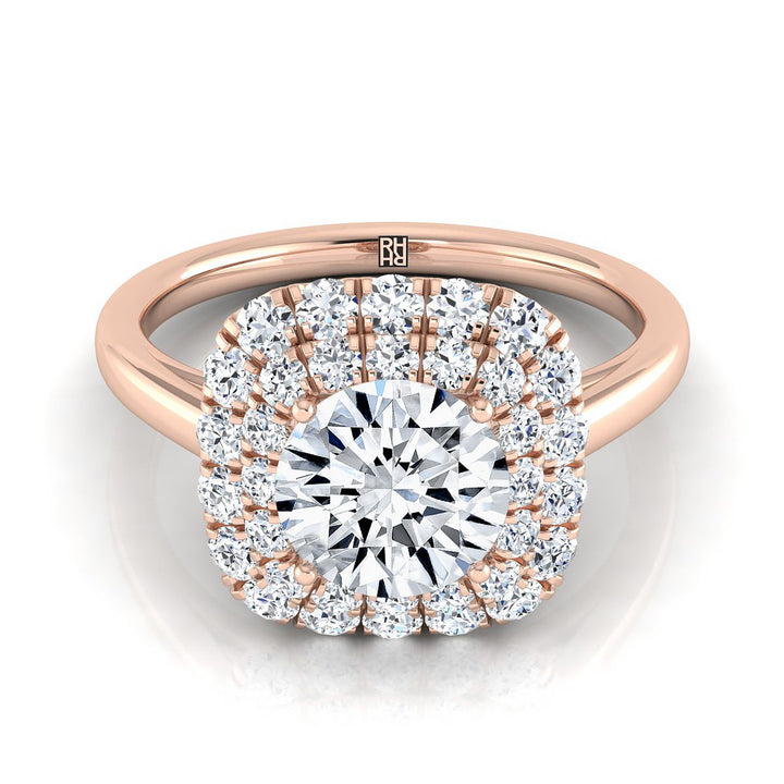 แหวนหมั้นแบบดับเบิลเพฟ ฮาโลว์ ที่ทำด้วยมืออย่างประณีตนี้ โชว์เพชรเจียระไนแบบ Brilliant Cut (h-i/vs 0.60ctw) ที่ประดับอย่างสวยงามในตัวเรือนทองกุหลาบ 14k คลาสสิก