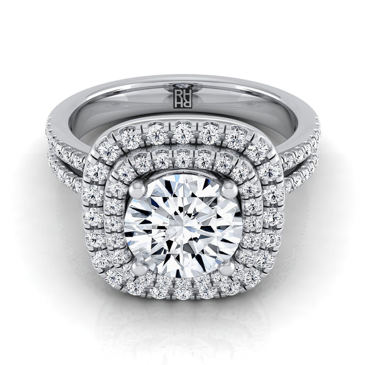 แหวนหมั้นเพชรทรงกลมเจียระไนแบบไลน์คู่สองแถวแบบฮาโล่ทองคำขาว 14K - 3/8ctw